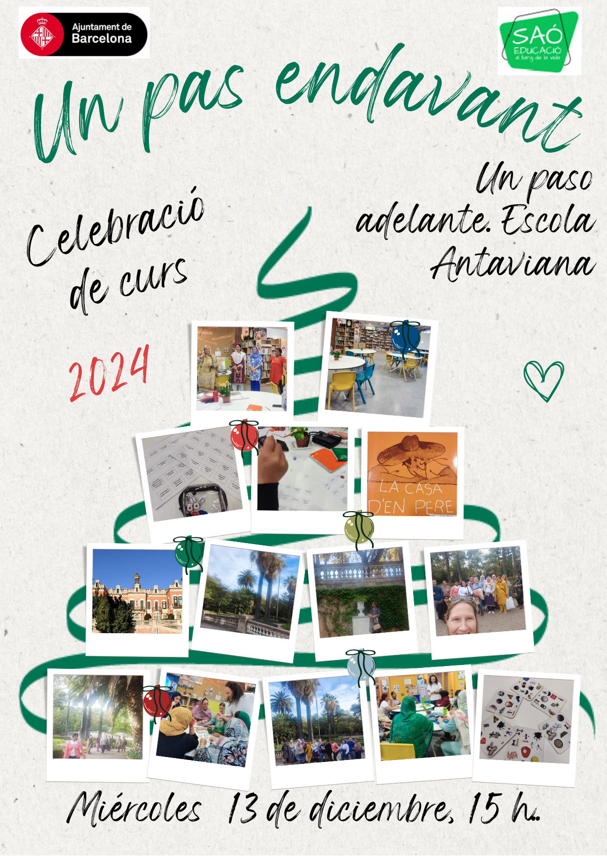 Avui dimecres 13 de desembre celebrem la nostra darrera sessió de l’any a l’Escola Antaviana que aculli el nostre projecte: “Un pas endavant” * “Un paso adelante”.