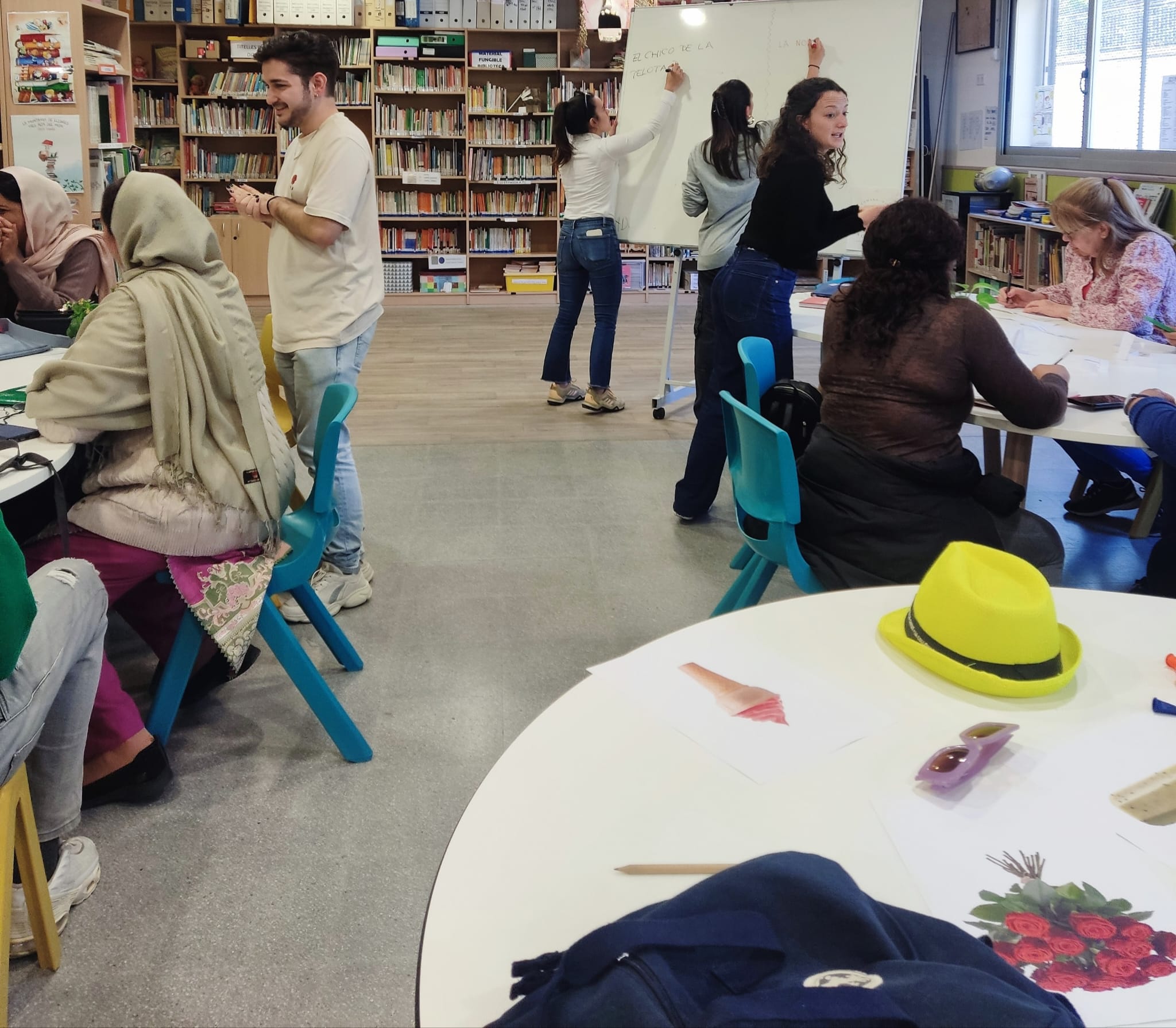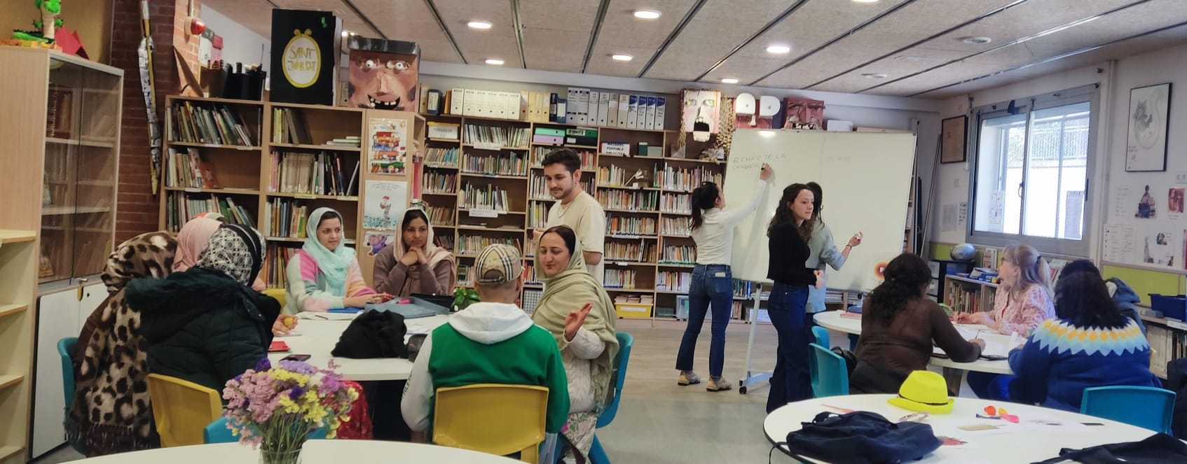 A càrrec dels estudiants d´Educació Social de l´assignatura: Educació de Persones Adultes de la Universitat de Barcelona, 18/03/2024. Escola Antavina, Roquetes.